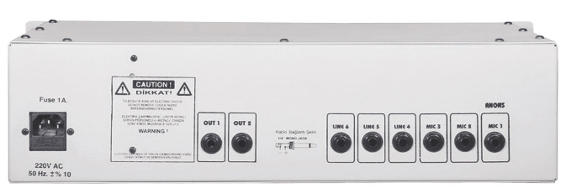 - Çıkış: Her kanal için 4-8 Ohm - 70V , 100V